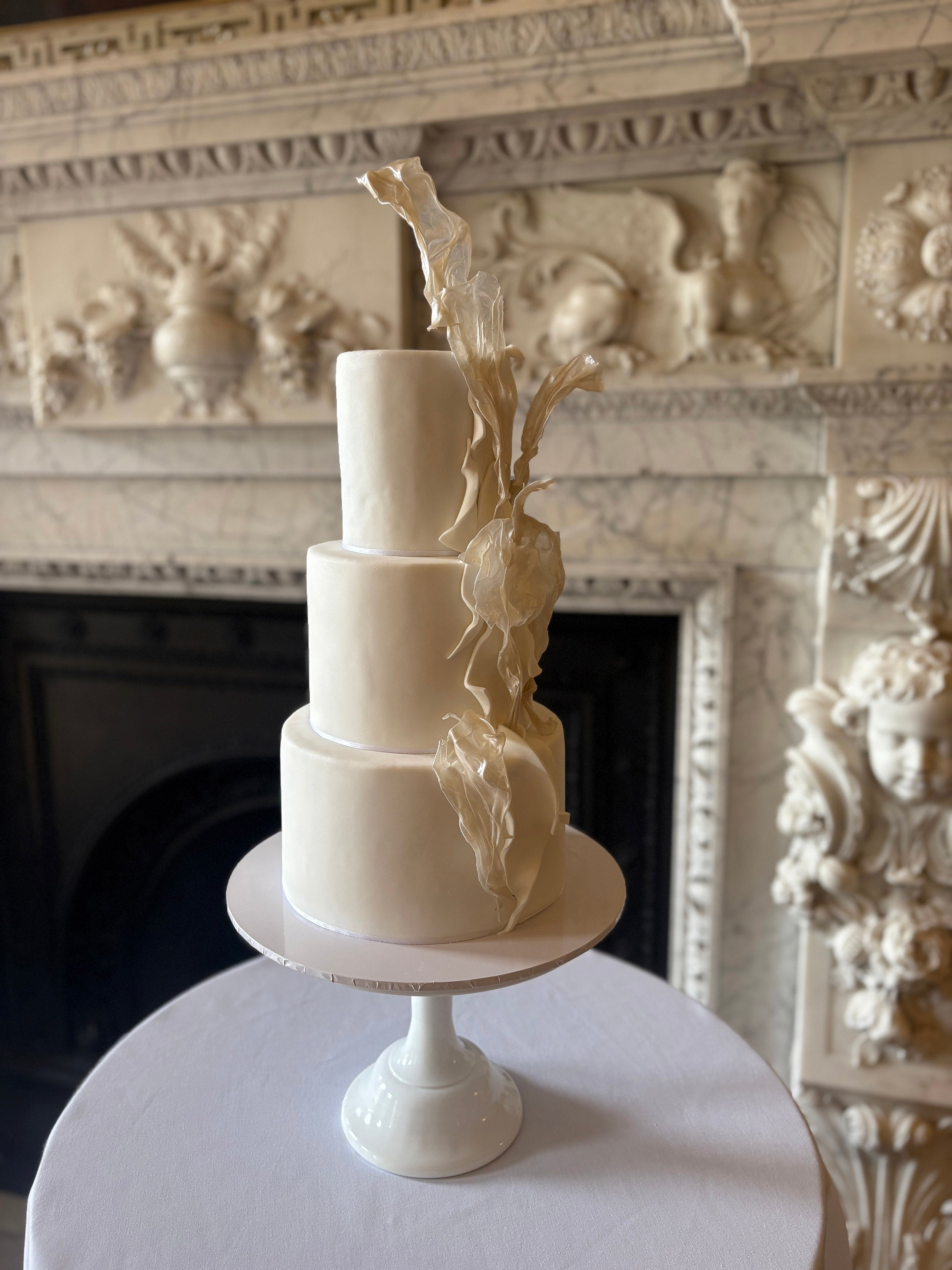 We take time to understand the space, the atmosphere, and the people the cake is created for. From there, we design with proportion and presence in mind — ensuring each piece feels at home within its surroundings, whether that’s a contemporary venue, a historic setting, or a destination celebration.